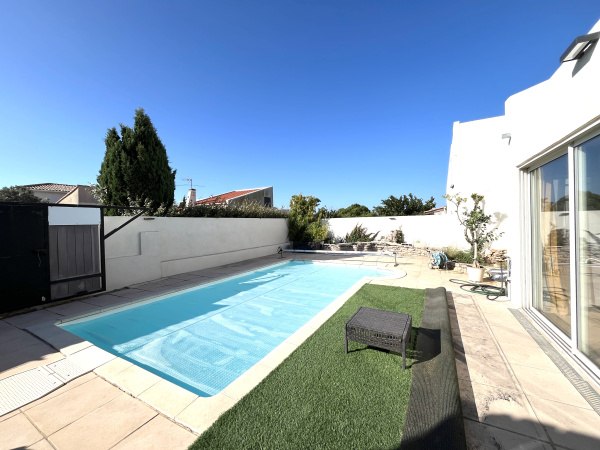 À l’extérieur, la propriété offre de très belles prestations : piscine , cuisine d’été aménagée pour des moments de partage, ainsi qu’un garage .