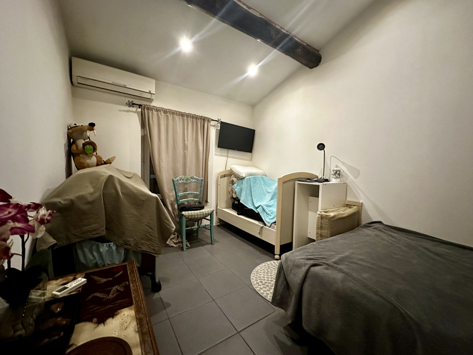 Double vitrage, place de parking, rangements, climatisation reversible et cheminé.